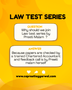 PS: Don’t think twice!! Enroll for the best LAW CA Test Series and increase your confidence. You will feel the change in your approach after the first test itself